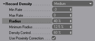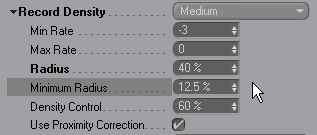 Image_29 The Density Control behaves like a multiplier for total record density, and it reportedly affects the shape of the falloff curve between planar records (controlled by Radius) and corner records (controlled by Minimum Radius). When the radius value won't go low enough to space the records as closely together as you’d like, increasing the density control value will add more. Min Rate Max Rate: Save now, pay later.
