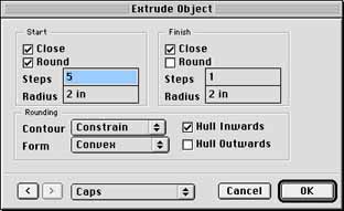 | If you download the above file you will find the 350 splines that make up the puzzle pictured above in a group object called Puzzle Splines. Select the Puzzle Spline object group in the Object Manager and then extrude the splines using Extrude Object (Object-Spline Objects-Extrude Object). I recommend the following settings as pictured below but you can use whatever settings you please. | |||||||||||||||||||||||